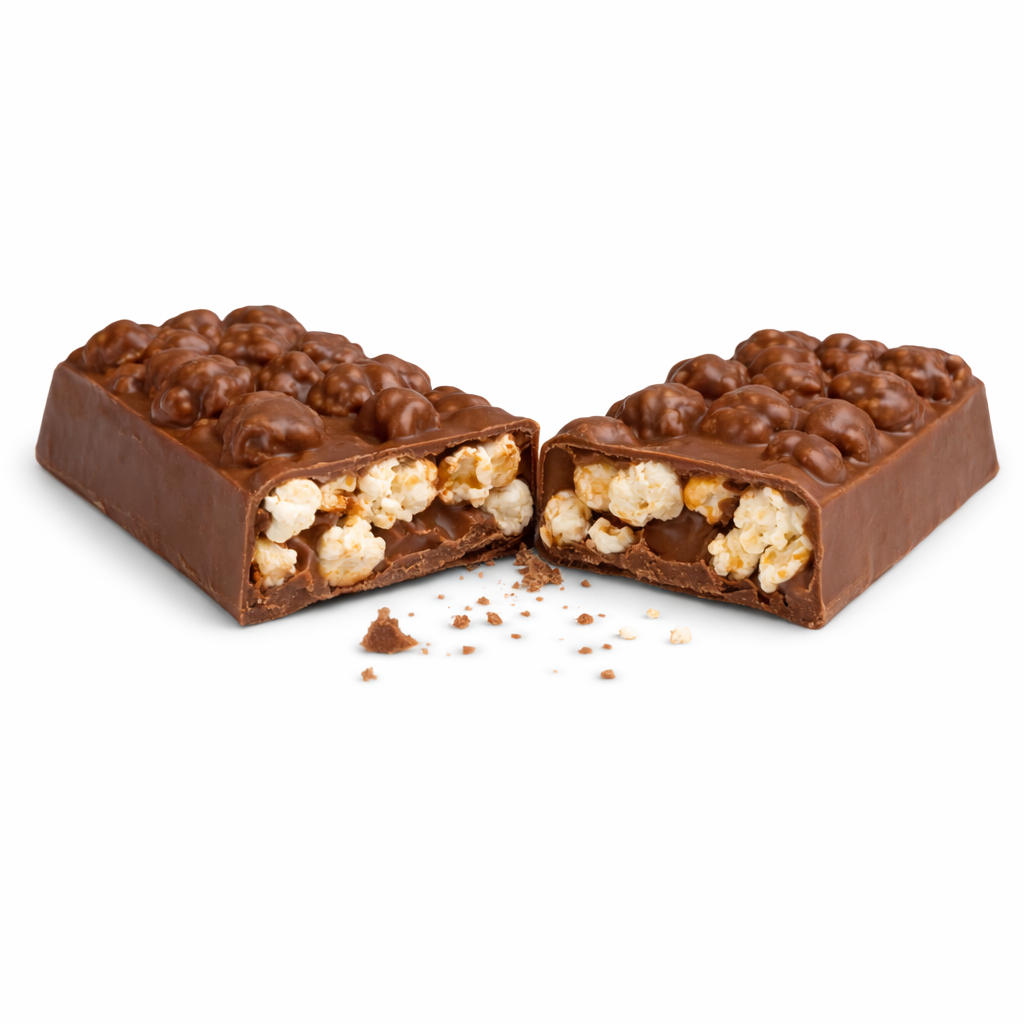 Uma combinação irresistível de chocolate cremoso com pipoca gourmet crocante por dentro e por fora.
